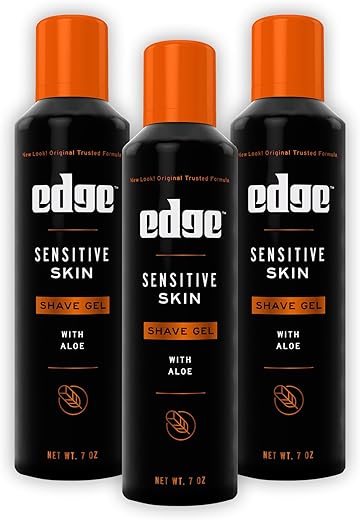 - MENS SHAVE GEL WITH ALOE: Edge Sensitive Skin Shave Gel, a top-rated shaving cream, contains a touch of aloe and lubricants for moisturization and a smooth razor glide.
